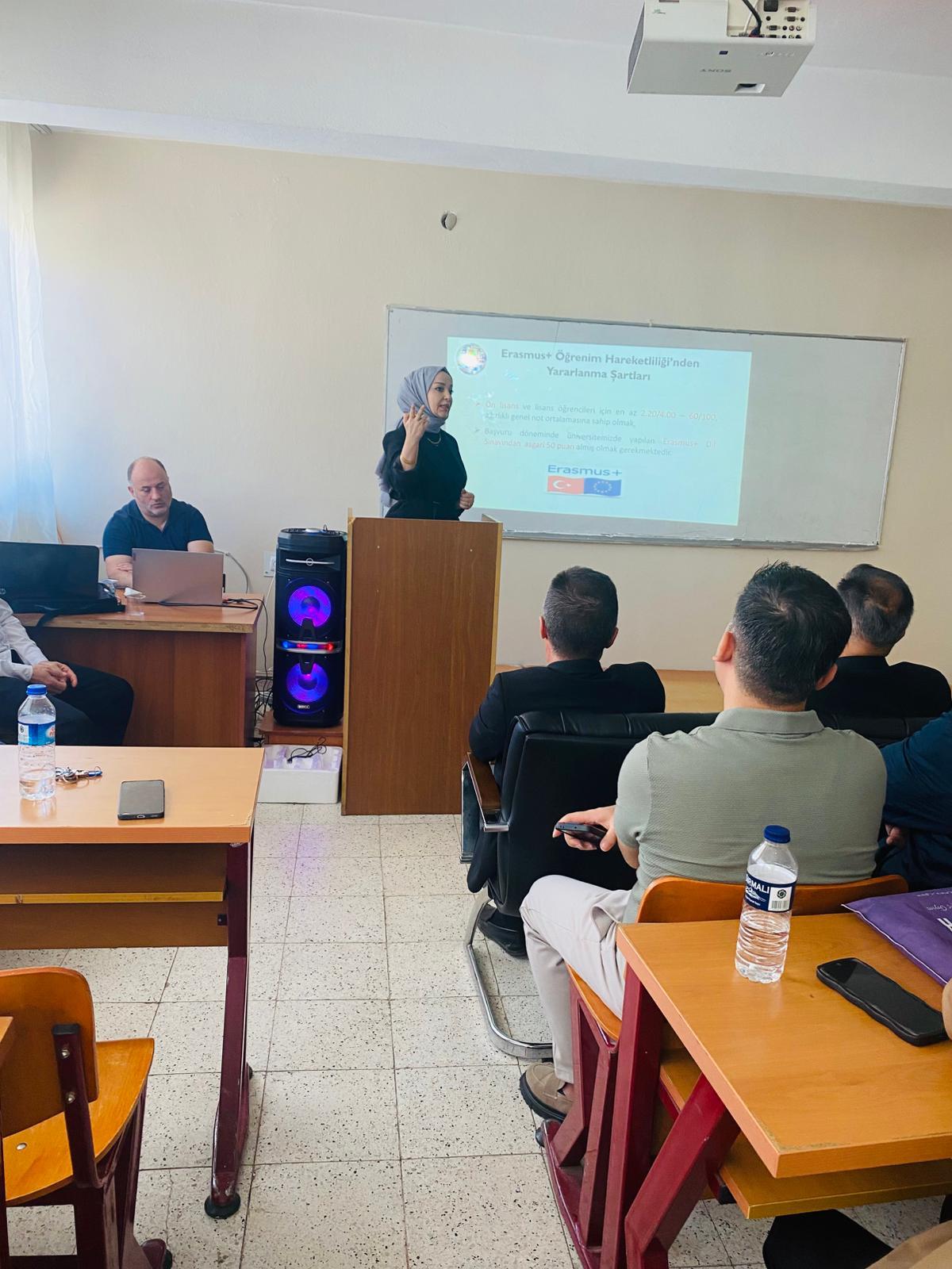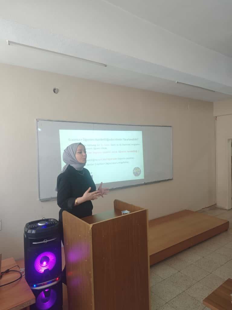 - Erasmus + hizmetleri hakkında ve Mevlana Değişim Programları hakkında bilgilendirme Erasmus+ Sorumlusu Dr. Öğr. Üyesi Yasemin CEYLAN tarafından bilgilendirmeler yapıldı.